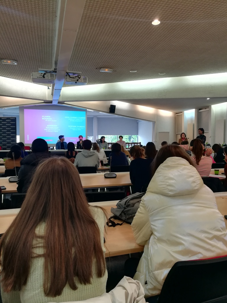 t été invitées à rencontrer des professionnelles de Renault Digital aux parcours très divers. Depuis une trajectoire plus traditionnelle (école d'ingénieur, ou parcours universitaire) jusqu'à des reconversions sur le tard, en passant par l'alternance, nos élèves ont pu constater qu'il y avait plusieurs chemins pour accéder à ce secteur et elles ont été encouragées à ne pas se limiter dans leurs ambitions. Après la présentation de plusieurs métiers du digital (Data Scientist, Directrice de projet, Architecte informatique, Développeuse, etc), les élèves ont été invitées à participer à un atelier sur la coopération et le travail de groupe.