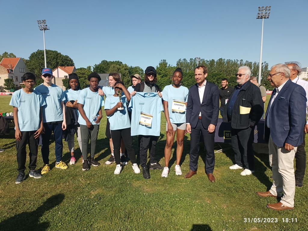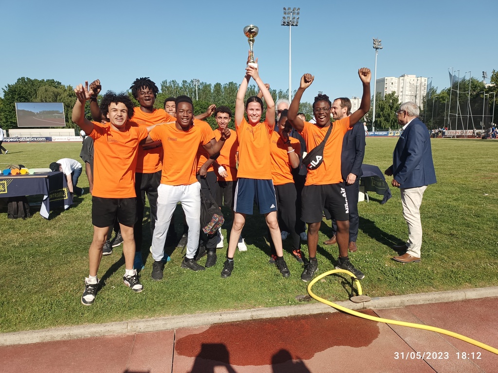 Lors de la 14ème édition du meeting international d'athlétisme de Montreuil, notre lycée a encore brillé aux relais 10 fois 200 m mixte. A la fois par le nombre, deux équipes engagées et par la qualité en terminant 1er et 3ème. Nos équipes étaient composées d'élèves du lycée général et du lycée professionnel, ils ont su donner le meilleur de même. Sur toutes les éditions nous comptons 13 victoires pour une seule défaite, ce qui montre la suprématie de notre établissement dans le domaine de la vitesse. Les récompenses ont été remises par M BESSAC, maire de Montreuil qui nous a chaleureusement félicité. Nous vous donnons rendez-vous l'an prochain pour participer à cette magnifique journée d'athlétisme.